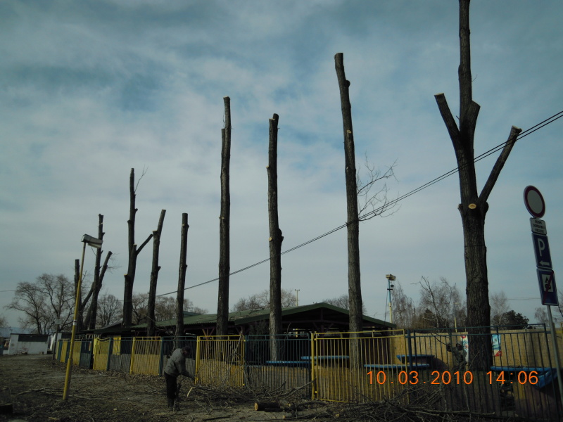 Zrezávanie topoľov ohrozujúcich bezpečnosť v rekreačnom stredisku Jazero Čaňa